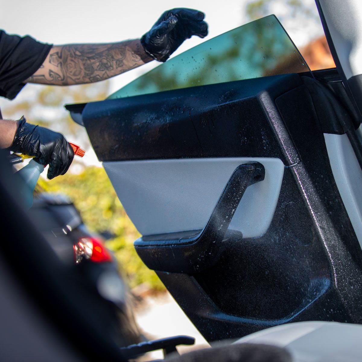 - Steam clean carpet and floor mats. Includes cloth seats.